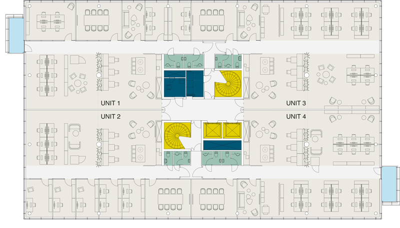 - Office sizes vary from approx. 250 m² – 1000 m² per level according to individual tenant needs